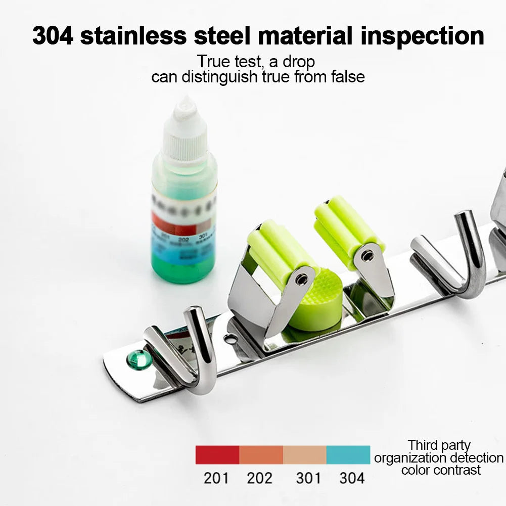 Suporte Organizador de Vassouras e Rodos em Inox – Gancho de Parede para Cozinha e Banheiro